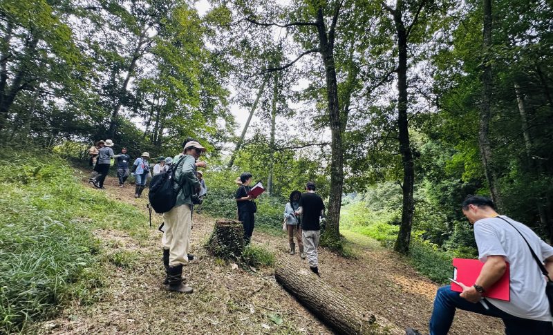 案内人は、卒塾生で今年から「コバウッズ」として活動を始めた小林建太さん。林業に携わる若い世代の視点から、集落の里山を案内していただきました。